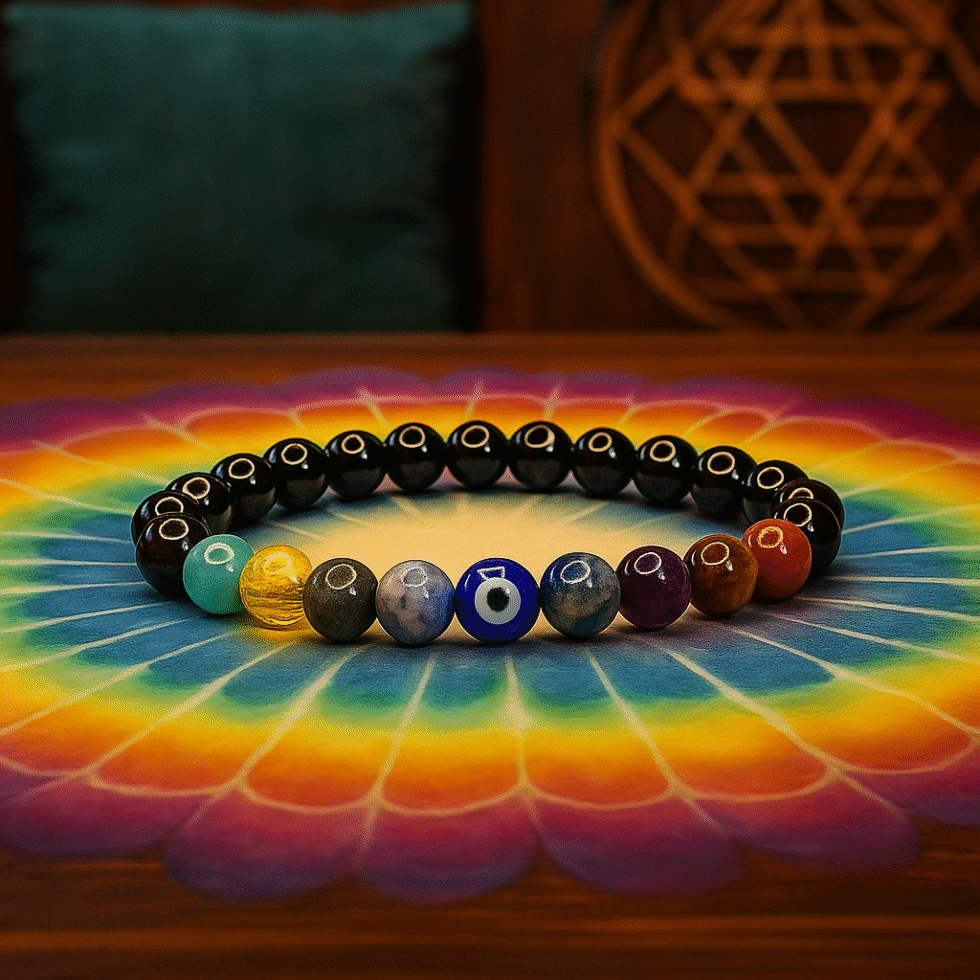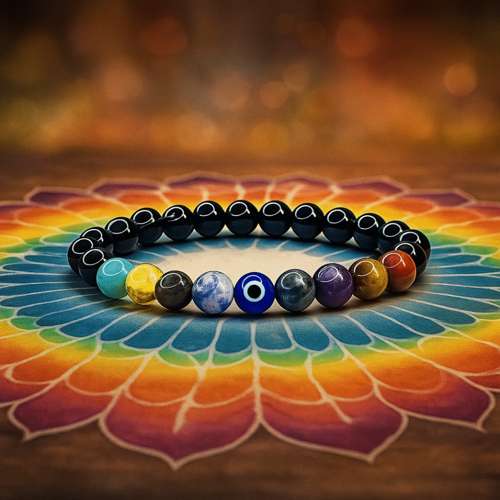 Shield your energy and align your chakras with this powerful Evil Eye 7 Chakra Protection Bracelet. Featuring a central Evil Eye bead for spiritual protection, surrounded by vibrant chakra stones and grounding black beads, this bracelet helps repel negativity, balance energy flow, and boost intuitive strength. Ideal for meditation, daily wear, or spiritual practice—this bracelet offers both style and soul armor in one meaningful accessory.