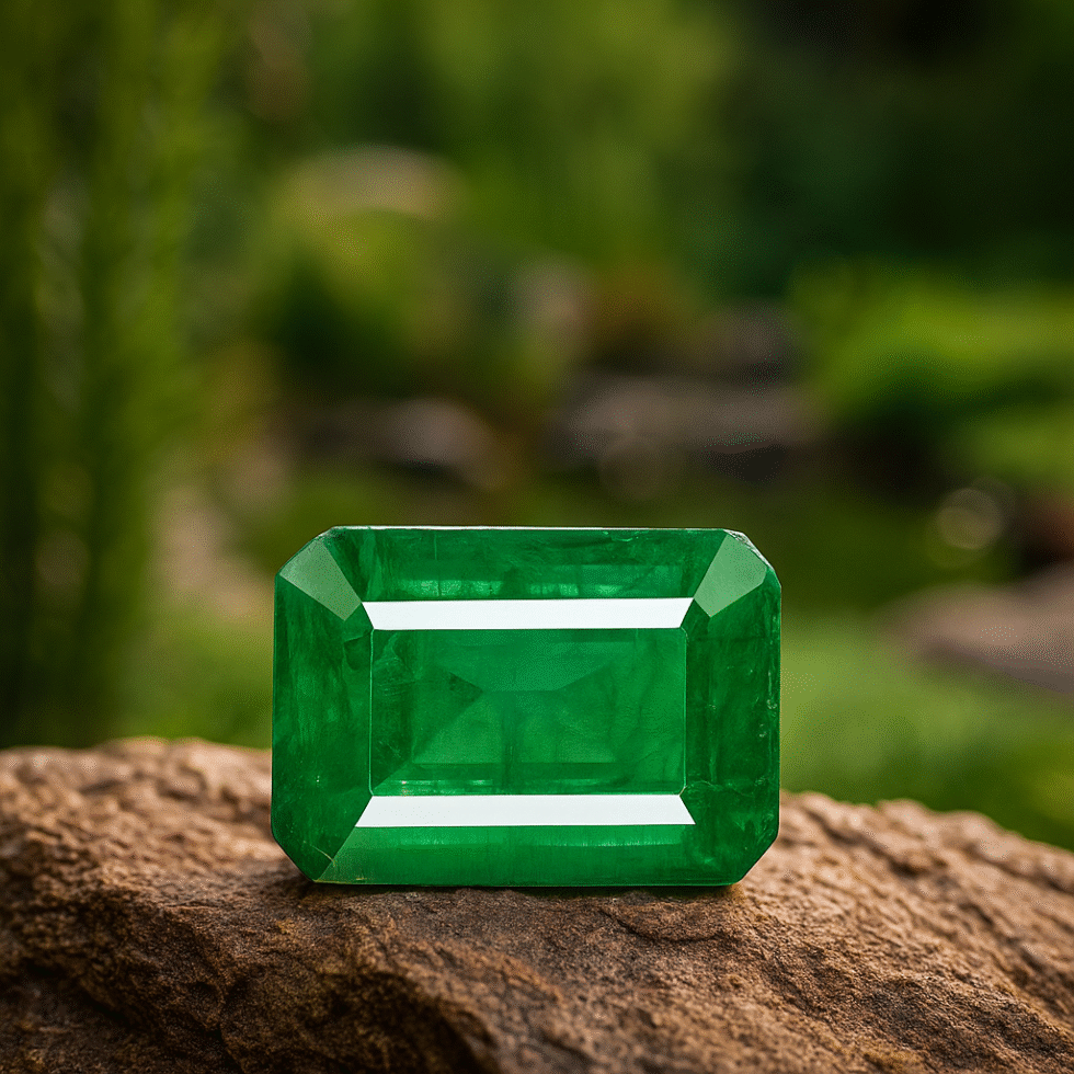 Immerse in the timeless allure of this premium Zambian emerald, expertly shaped in a rectangular step cut for enhanced depth and brilliance. Known for its rich green hue and natural inclusions, this gemstone symbolizes wisdom, growth, and clarity. A powerful choice for fine jewelry or planetary remedies (Budh Graha), it reflects luxury and spiritual strength.